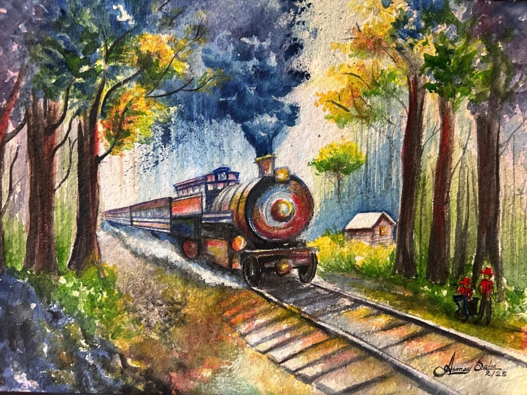 Train. Water colour handmade paper. 14″X11″. Rs-1500/-